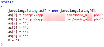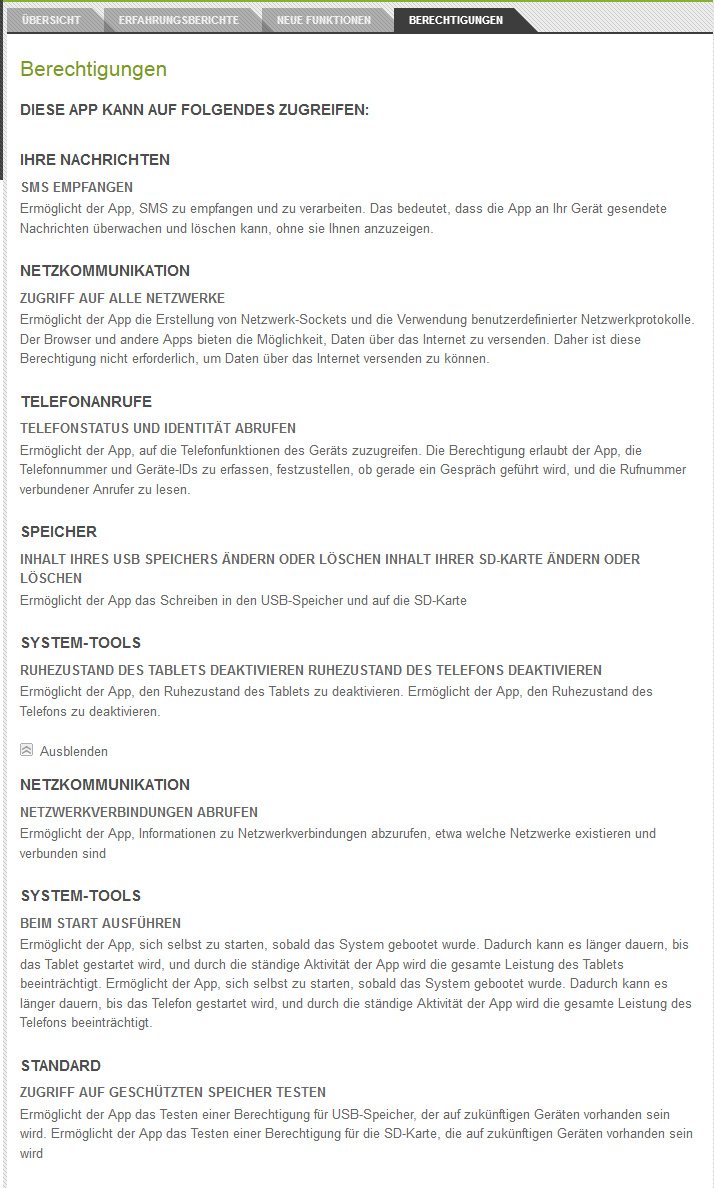 The application requires a range of authorisations. Among others, it requests access to incoming SMSs as well as access to all networks. This combination alone is enough for attackers to intercept mTANs on the mobile device. The app connects to two predefined URLS and sends the phone number, IMEI and the account data that the victim has entered in the app to this/these address(es). Hence, SMSs with mTANs intercepted at a later stage can be assigned to the right phone and corresponding account data.