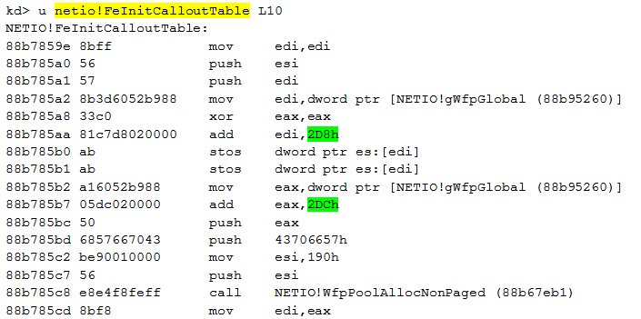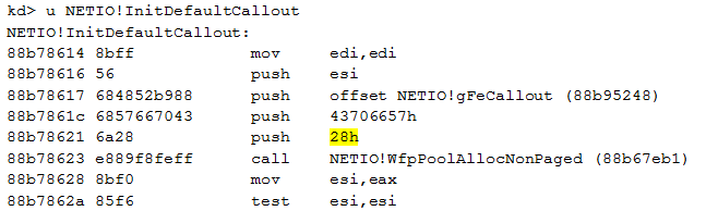 We can now extract the size of each structure stored within the array. As it is not documented by Microsoft, we identify the size by disassembling the function InitDefaultCallout():