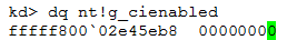 Microsoft created a Driver Signing Policy for its 64-bit versions of Windows Vista and later versions. To load a driver, the .sys file must be signed by a legitimate publisher. Developers may disable the Driver Signature Enforcement process during the development phase of a driver, which means a developer does not have to sign each compiled driver version during development phase. This mode is called “Test-mode”. In our case, the rootkit is not signed, which would usually mean that it had no chance to be accepted by Microsoft’s policy, but it disables the digital signature process to circumvent the checks. The status of this feature is stored in the global variable nt!g_cienabled. Compare the value of this variable on a clean system, without infection with the same information on an infected system: