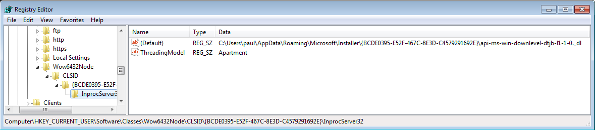 - HKCU\Software\Classes\Wow6432Node\CLSID\{BCDE0395-E52F-467C-8E3D-C4579291692E }\InprocServer32