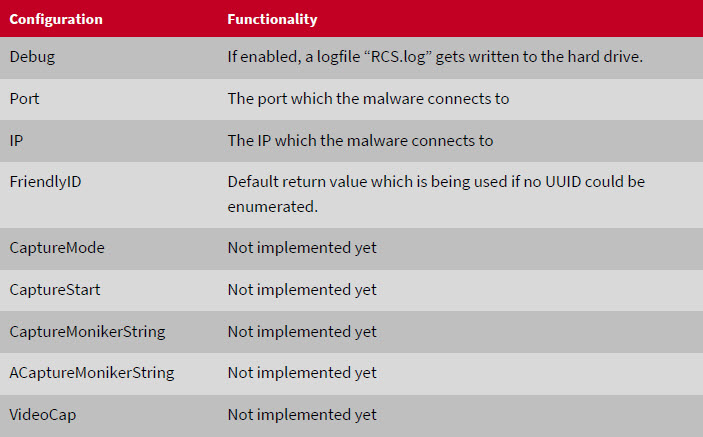 Although not all of the functions are omplemented yet, it is relatively safe to say that Rurktar is intended for use in targeted spying operations. The functions that are already implemented allow reconnaissance of a network infrastructure, they can check whether or not a particular machine is reachable, take screen shots and even download specific files from an infected machine. It is also possible to delete files from or upload files to a machine. All of this points to industrial espionage - the functions that have been described so far do not have any practical application for large-scale operations, such as ransomware schemes.