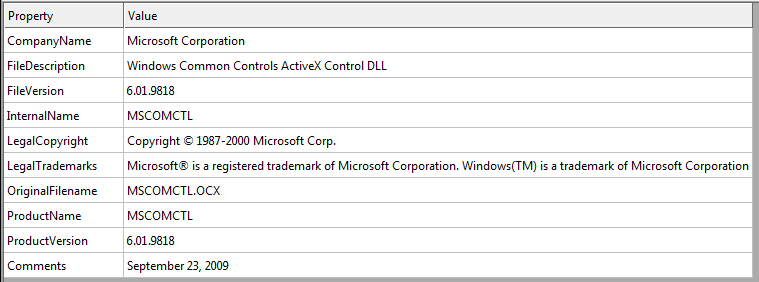 CVE-2012-0158 relies on a vulnerable version of MSCOMCTL.OCX (See Figure 8) which is responsible for ActiveX controls. It is a key application that is used by several Microsoft Applications such as Microsoft Internet Explorer and Microsoft Office, wherein it allows an application to use a functionality of another application.