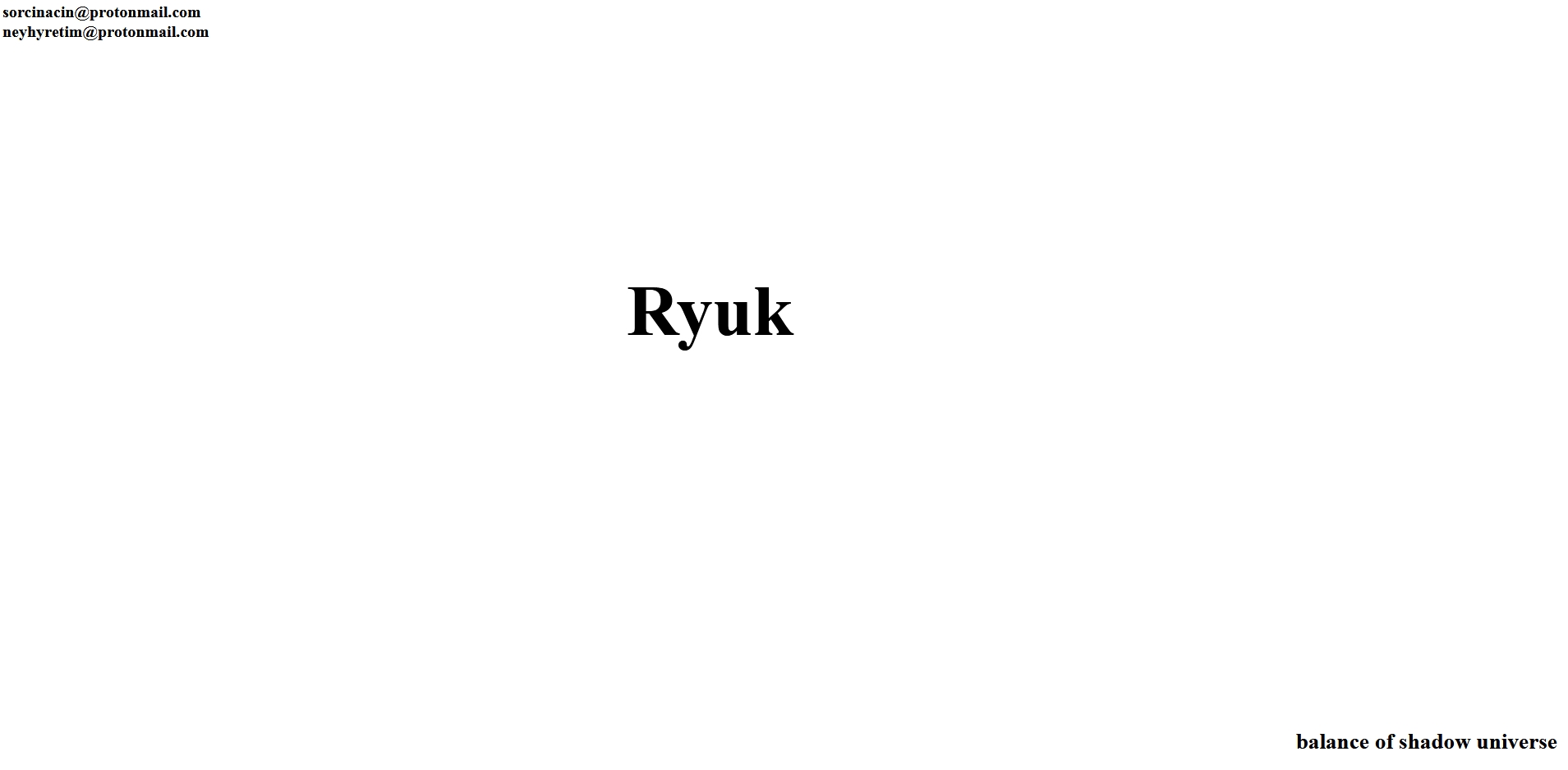 In the previous Ryuk versions, the ransom payment instructions were explicitly given. This time, the name "Ryuk" is presented in center, which should let the victim inevitably know, that it got infected by the Ryuk ransomware. The payment "instructions" are simply two emails, which are located at the top left of the HTML file. Why the operators have chosen to use this kind of ransom note is open for speculation.