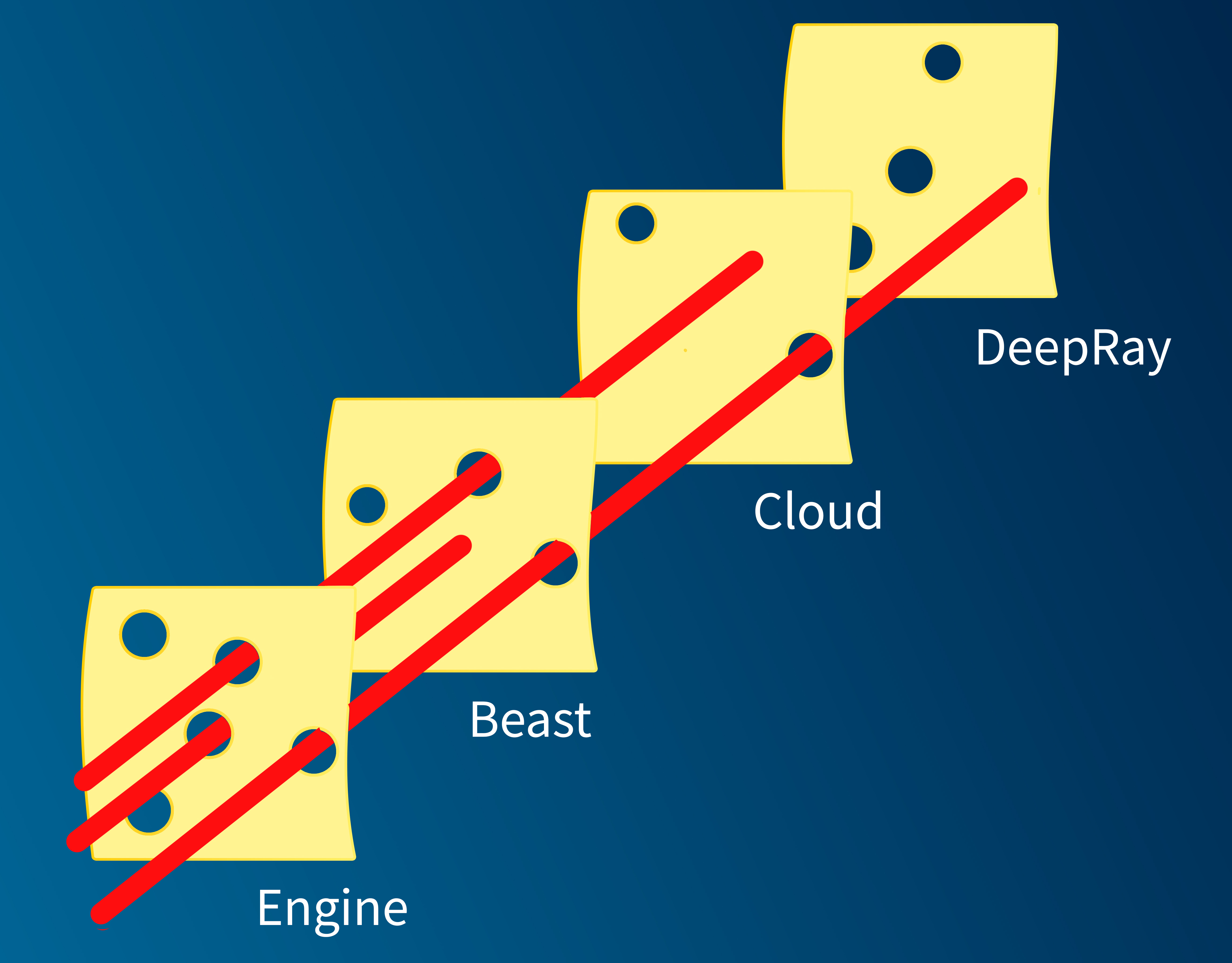 Everyone is probably familiar with the swiss cheese model of defense, the implications of which are of interest here.