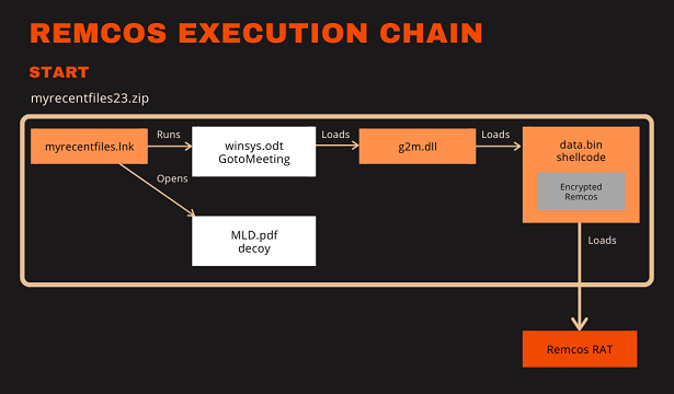The resulting payload is a Remcos RAT executable.