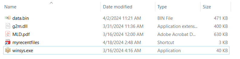 When myrecentfiles.lnk[6] is double-clicked, it will open a harmless PDF file named MLD.pdf[5] and execute winsys.odt[3] at the same time. The winsys.odt is a validly signed GoTo Meeting PE32 file and not malicious.