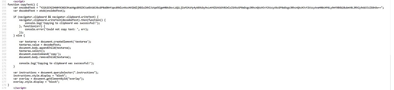 The page contains JavaScript code which copies a malicious PowerShell script to the clipboard. The page urges the user to press a series of key combinations to verify as ’human’ and proceed further. If the suggestion is carried out, the user inadvertently executes the PowerShell script stored previously in the clipboard. The PowerShell script downloads the first stage malware loader and executes it. Eventually, the script opens a porn page to complete the ruse.