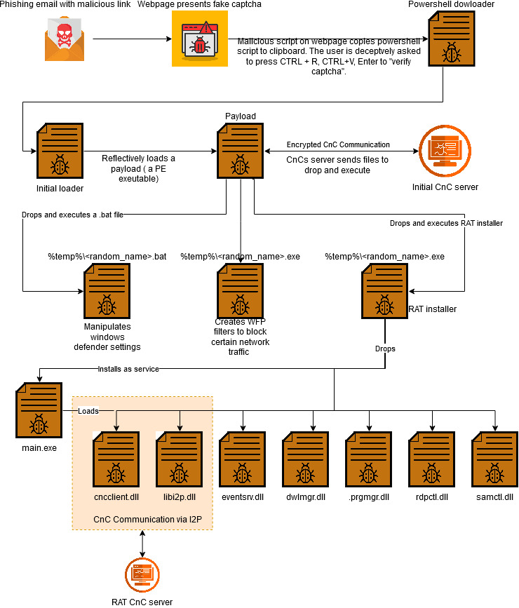 I2P is an encrypted peer-to-peer overlay network that enables encrypted peer- to-peer communication. An observer cannot access the content of messages, nor can they identify the source or destination. Consequently, the participants of the network transaction remain anonymous. The malware we are examining employs I2P for handling CnC communication. I2PD, an open-source C++ implementation of I2P client is used for this purpose.