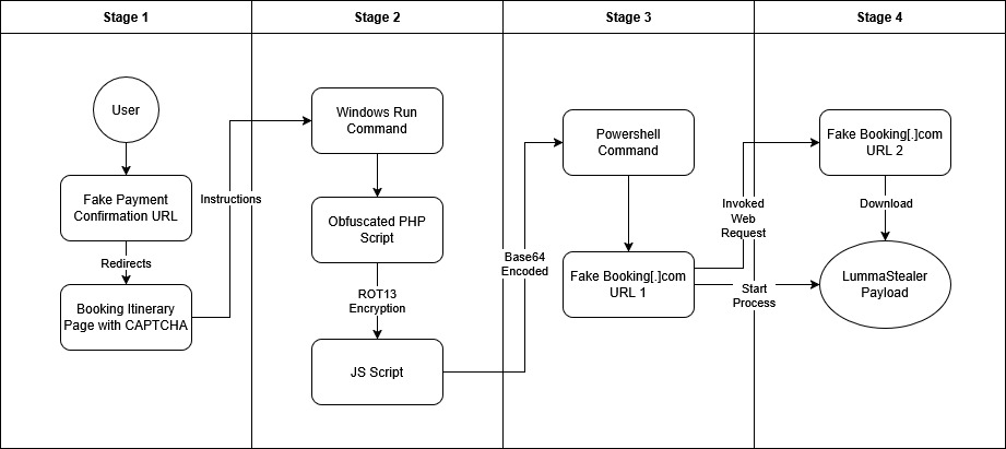 - New LummaStealer Campaign: A new LummaStealer attack targeting booking websites to deliver malicious payloads via Fake CAPTCHA prompts.