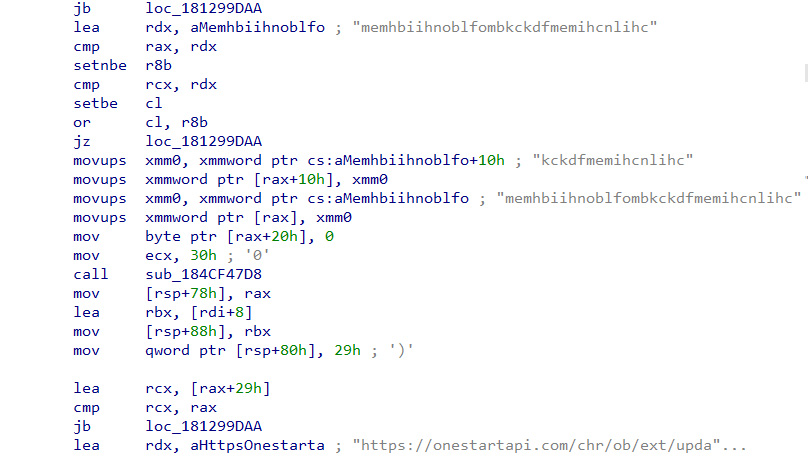The binary checks for updates for certain browser extensions that OneStart brings along with. Extension with id ‘memhbiihnoblfombkckdfmemihcnlihc’ whose update is checked from https[://]onestartapi[.]com/chr/ob/ext/update. This extension is installed by default, and the current version tracks visits to “booking.com” for the sake of “presenting” offers. However, previous versions of the extension had code in it to silently install an additional extension called “Capital one shopping”. The older extension also tracked “youtube.com” visits. Two more extensions are checked for but are not installed by default. Those extensions currently do not carry any functionality.
