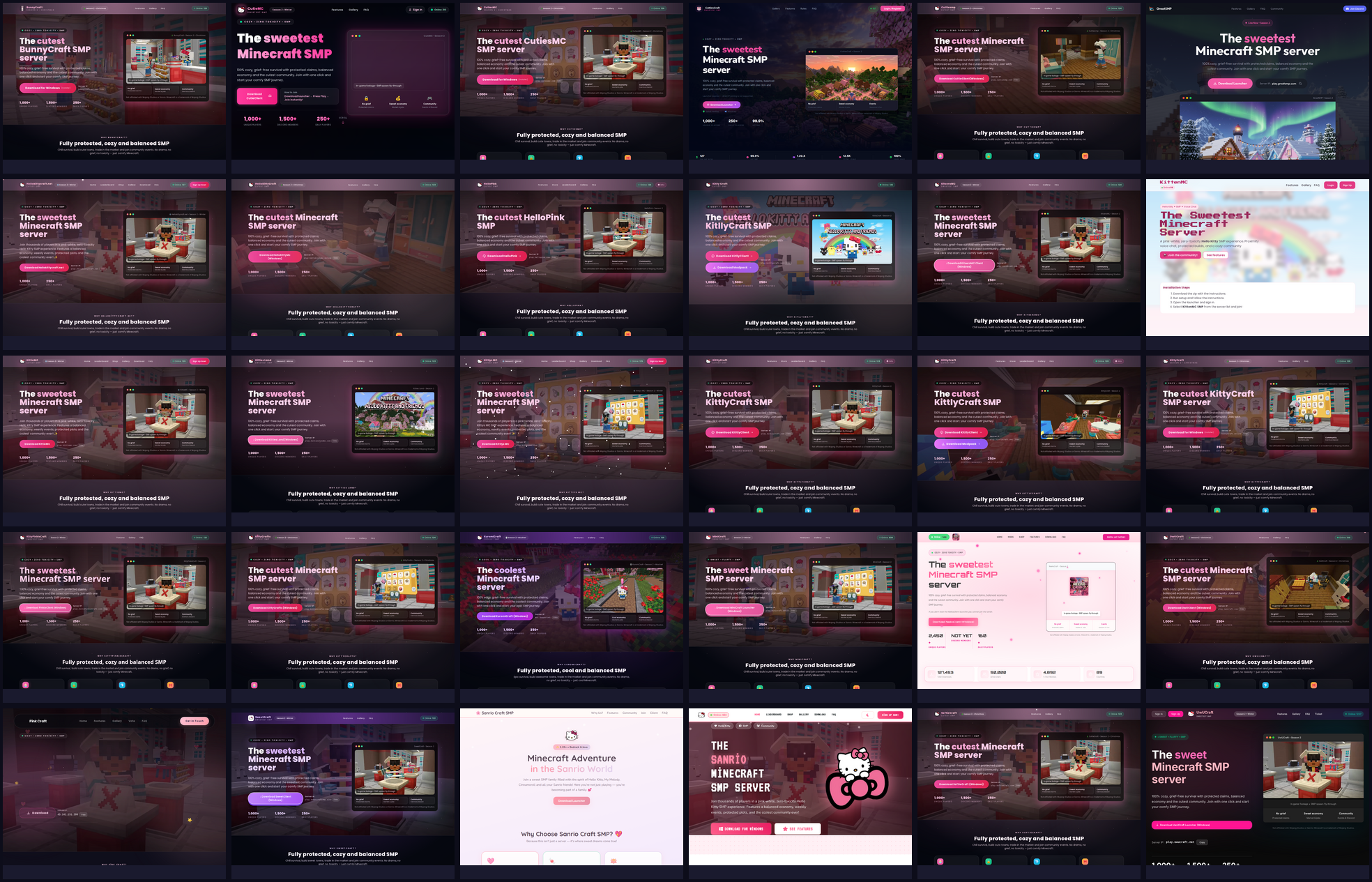 While most of the sites are lookalikes, some of them feature a different, pink-ish or kitty-themed style.