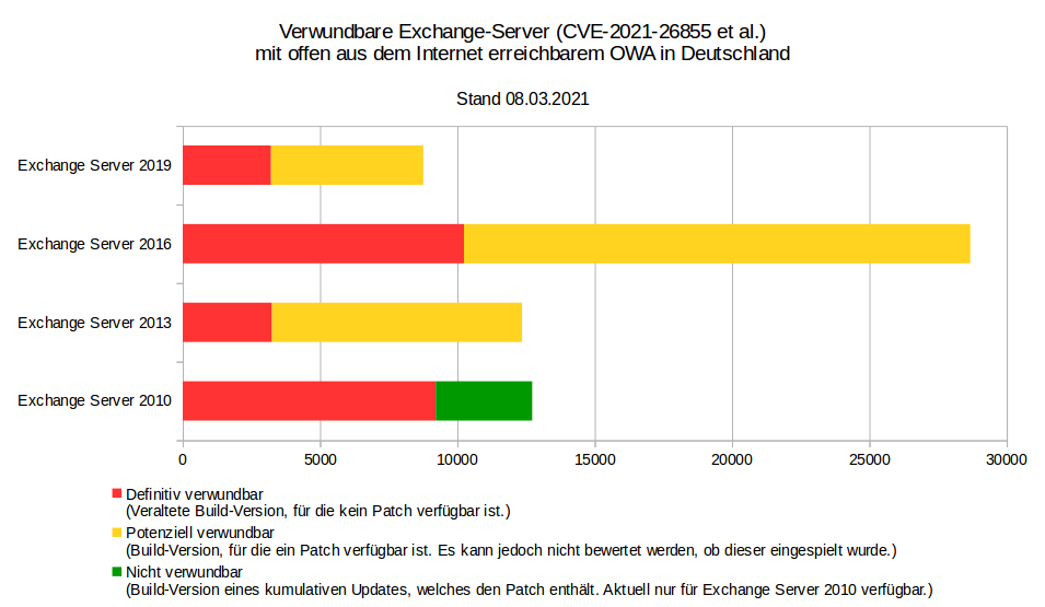 A complete Listing of Indicators of Compromise is available on the Microsoft website (link will open in a new browser window) einsehbar. According to the German CERT-BUND, there are up to 58.000 systems still potentially vulnerable in Germany alone, roughly one week after the general public was made aware of the flaws. It is very likely that this figure is significantly higher on an international scale.