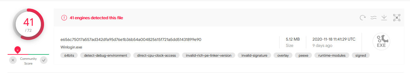 | [9] Coinminer | Winlogin.exe | e656c75017a557ad342dfa95d76e1b36b54a004825615f721a5dd51431899e90 |