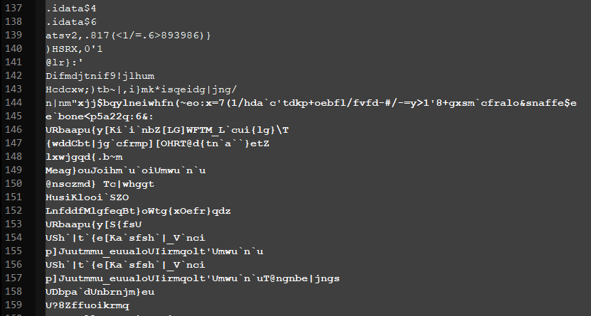 The first thing I noted after opening the strings view are some strings that looked encoded or encrypted. While this is not necessarily a sign of a malicious file, it is odd that a driver obfuscates a part of their strings.