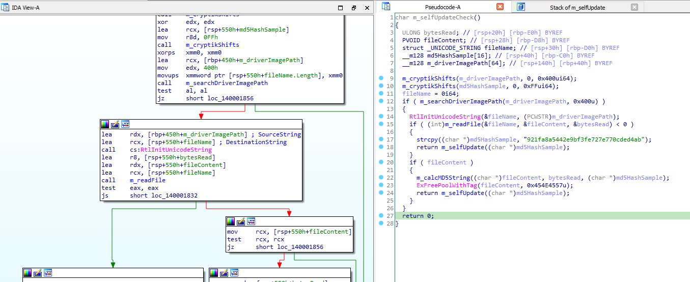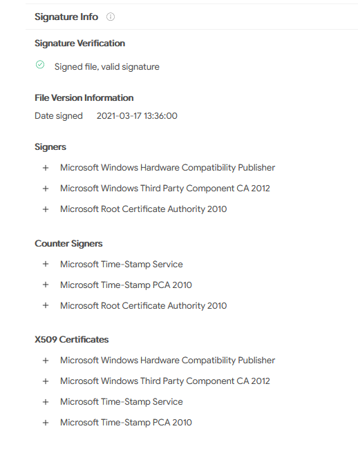 In this case the detection was a true positive, so we forwarded our findings to Microsoft who promptly added malware signatures to Windows Defender and are now conducting an internal investigation. At the time of writing it is still unknown how the driver could pass the signing process.