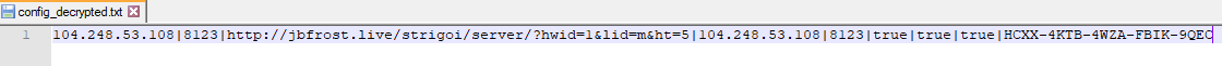 The resulting plain text configuration of our sample is in the picture below. It reveals, among others, the C2C server.